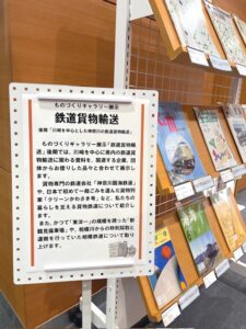 図書館の入り口近くで開催されていたものづくりギャラリー展示「鉄道貨物輸送」後期