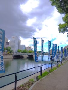 今日はセンターを出発して、橋本町にある厳島神社まで歩きました。参加者の方が「観光客には意外と知られていない穴場なんですよ」と教えてくださったスポット。街なかの喧騒から少し離れて、ふっと呼吸が深くなるような静けさがありました。