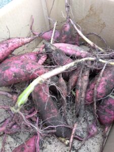 横川センターの花壇で、さつまいもの収穫を行いました。