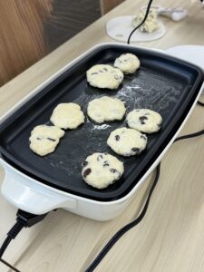 本日はお菓子作りで、卵を使わないレーズン入りのウェルシュケーキを作りました。