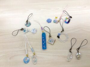 ハンドメイドでは、レジンを使ってストラップ作りを行いました。